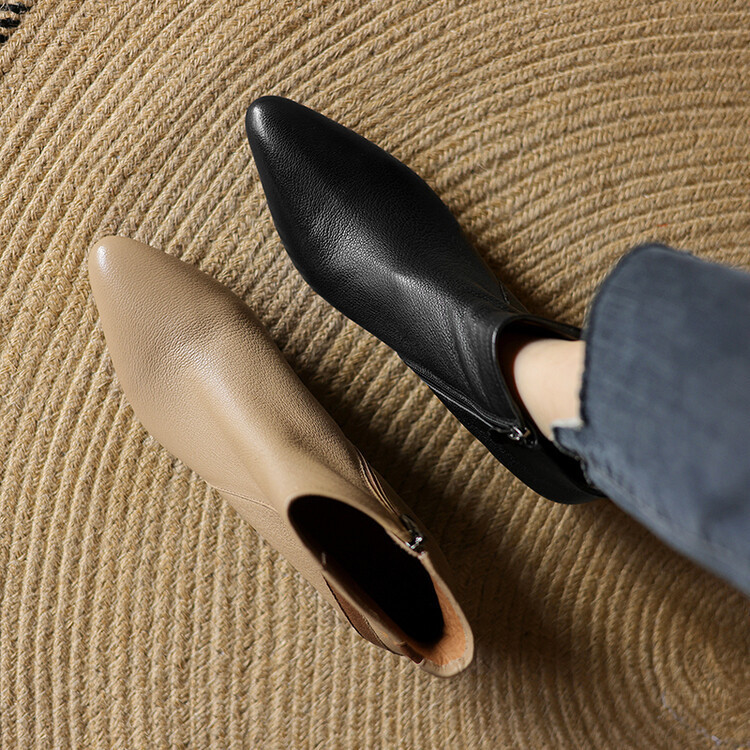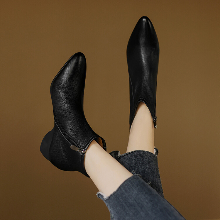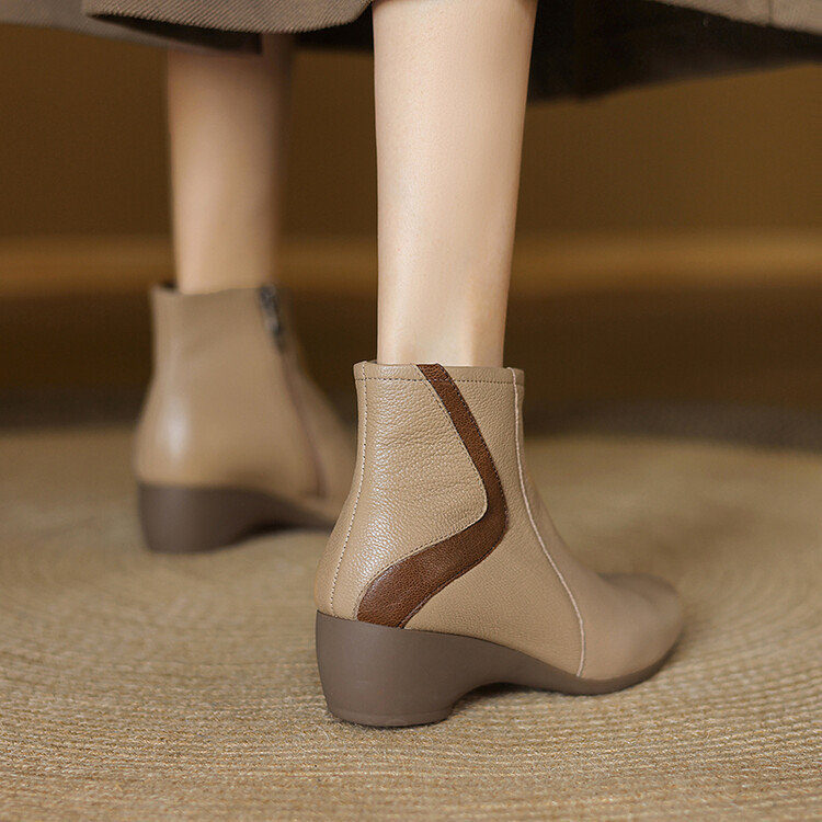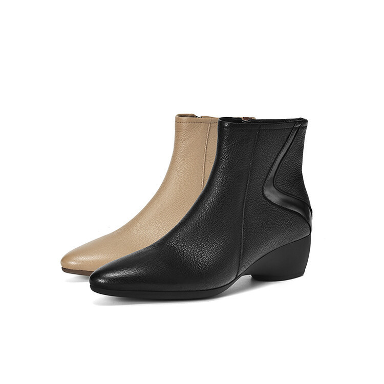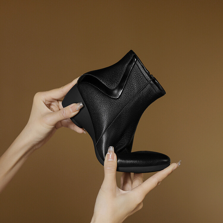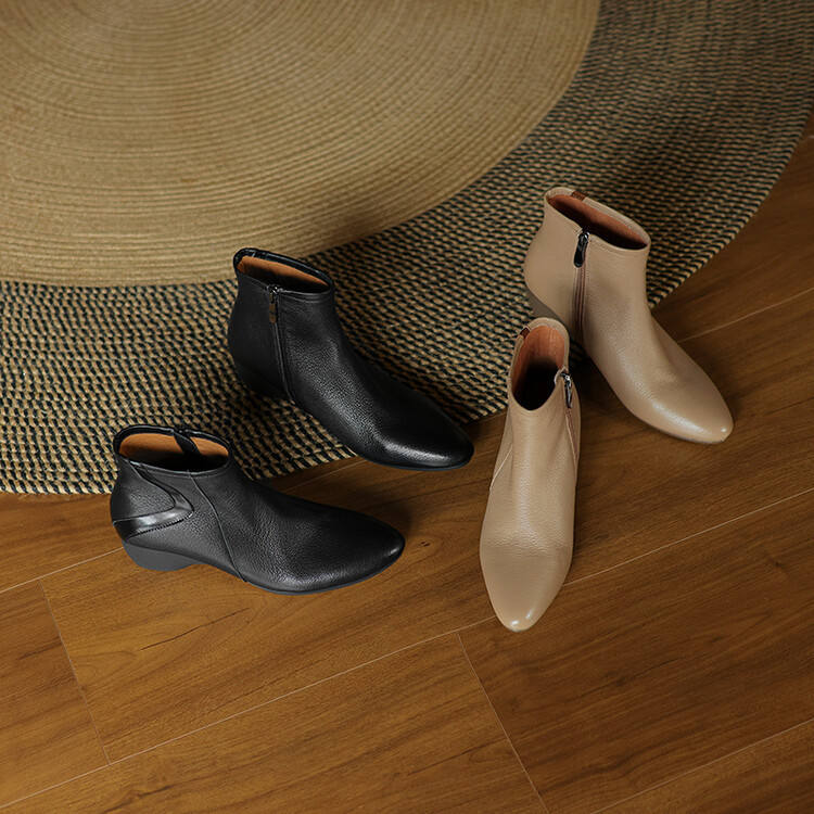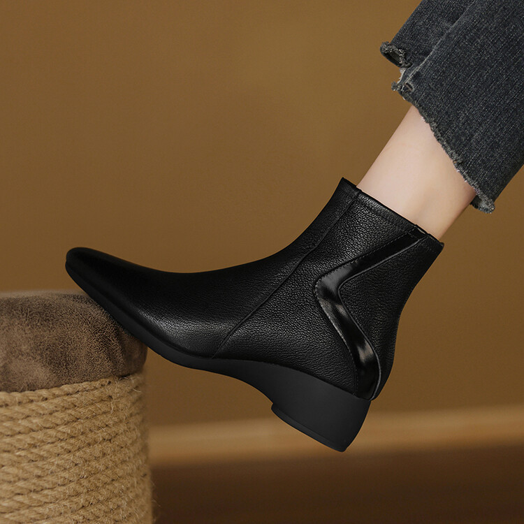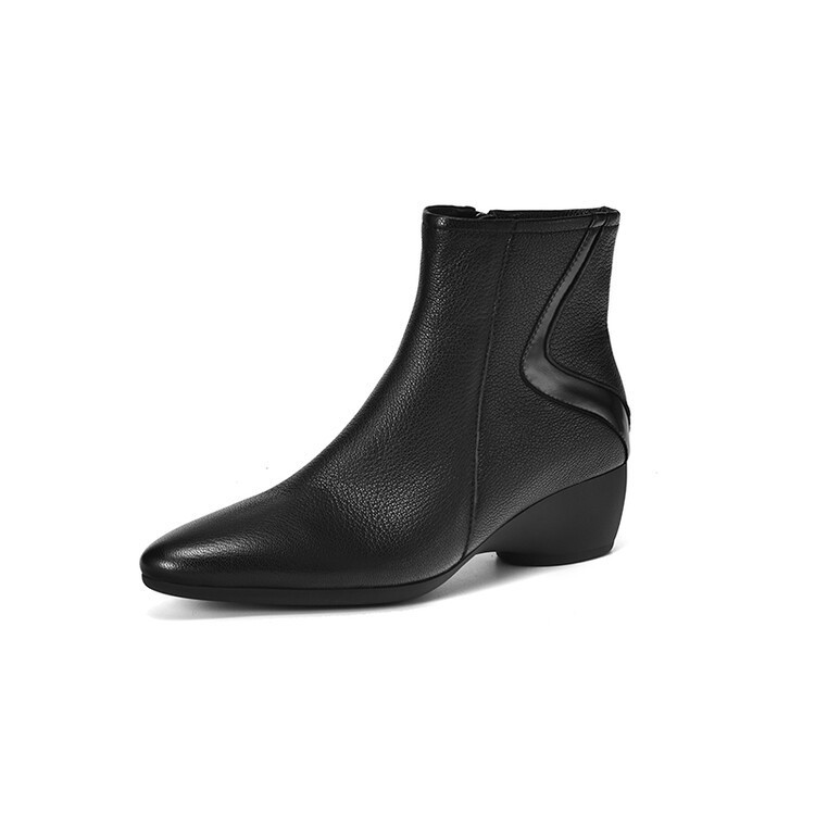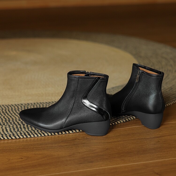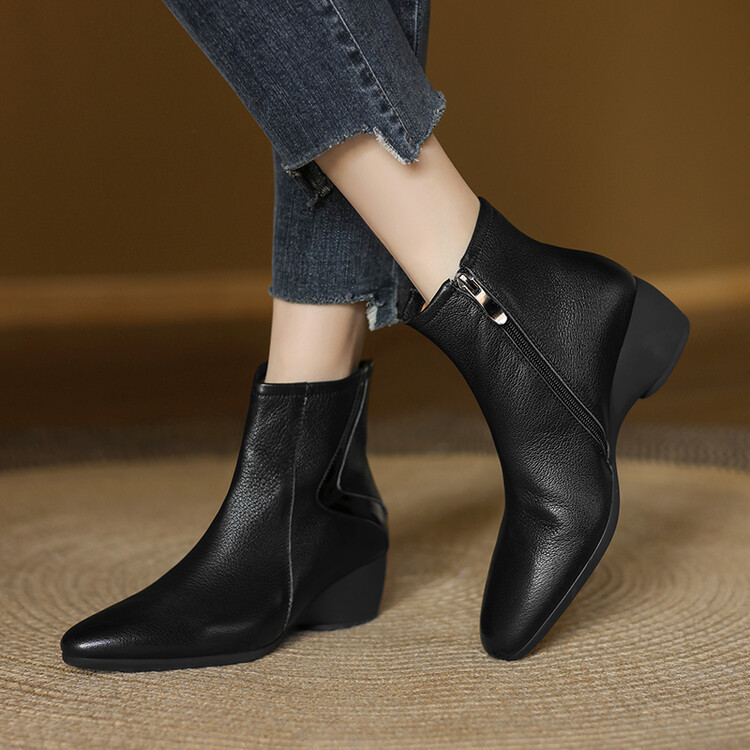 CHIKO Addy Pointy Toe Wedge Ankle Boots feature leather upper, leather lining, rubber sole. Heel height is approx. 1.5″ (4 cm)