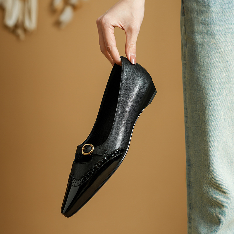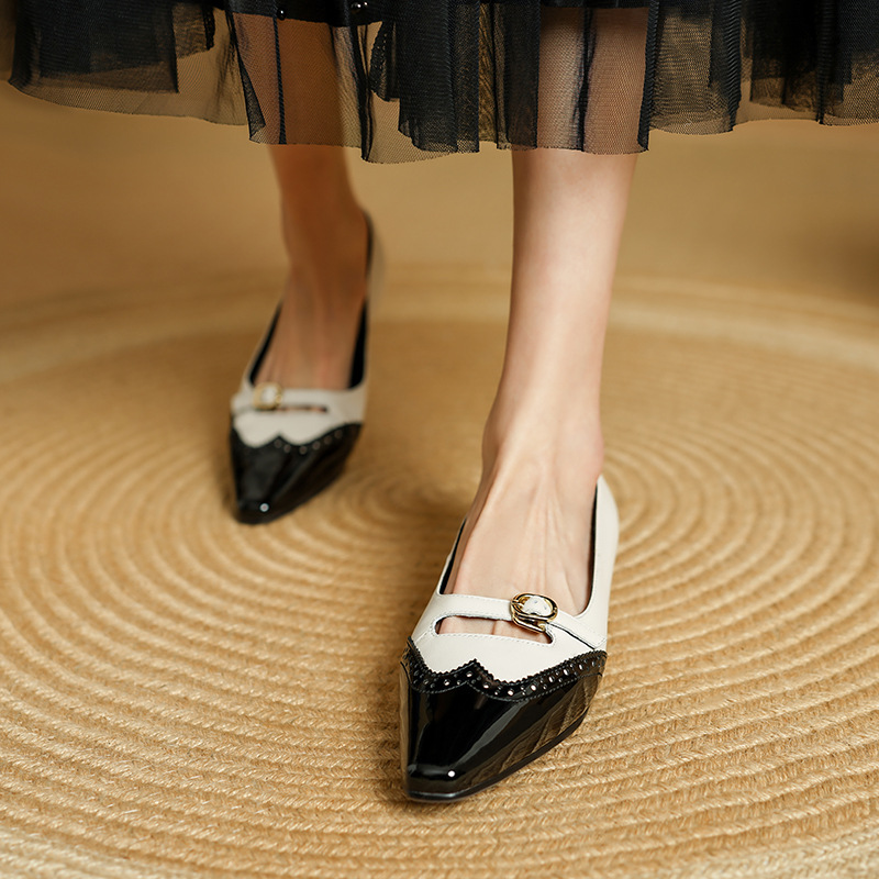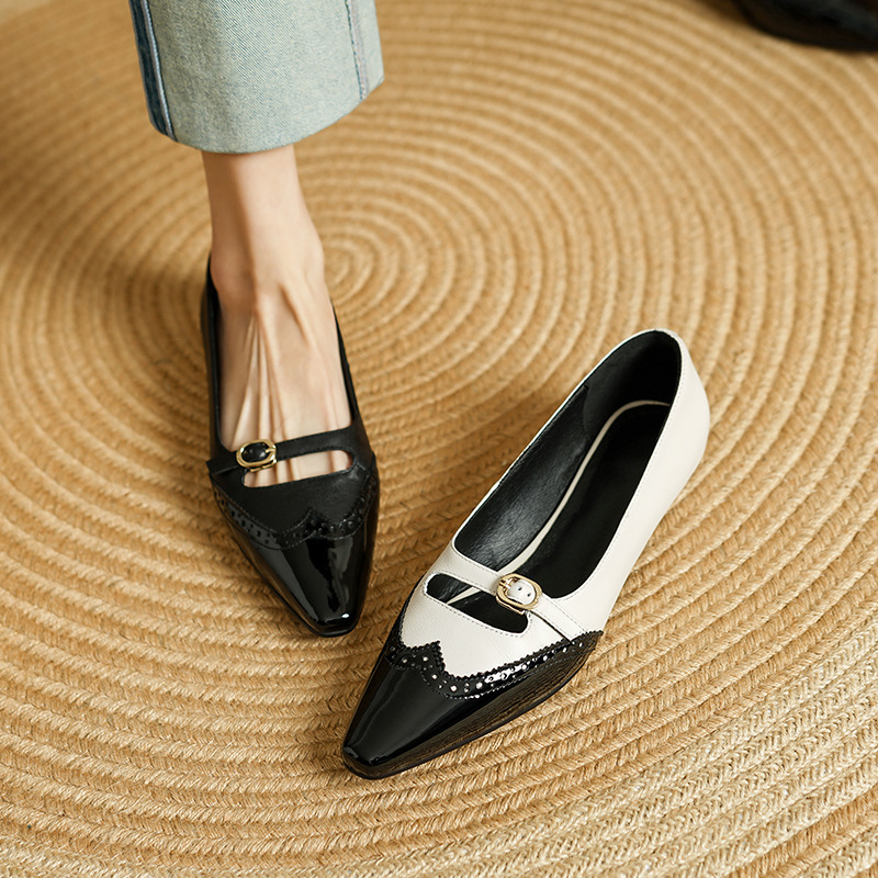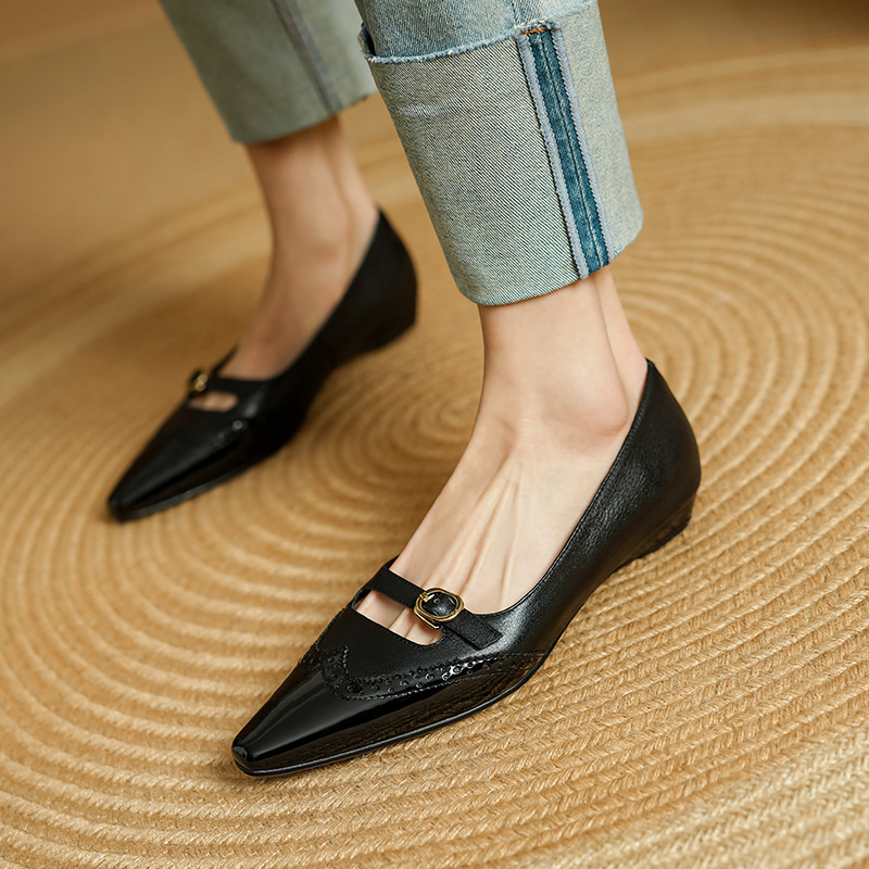 CHIKO Bambi Pointy Toe Wedge Mary Jane Shoes feature leather upper, leather lining, rubber sole. Heel height is approx. 0.8″ (2 cm)