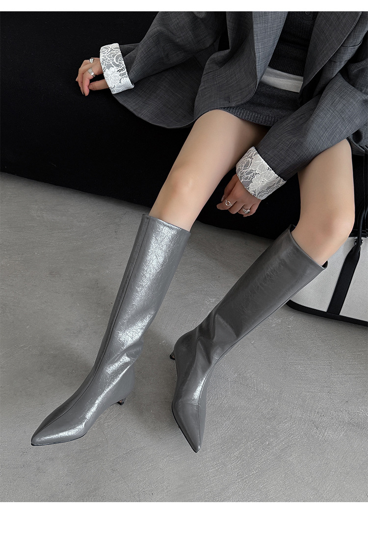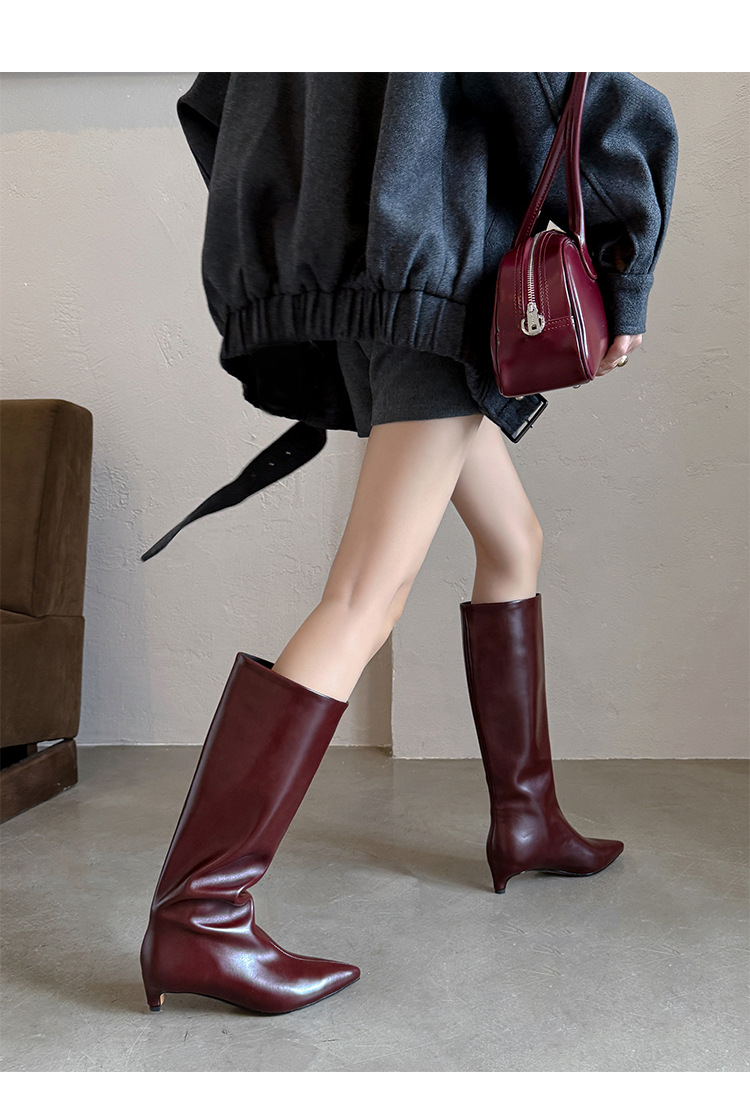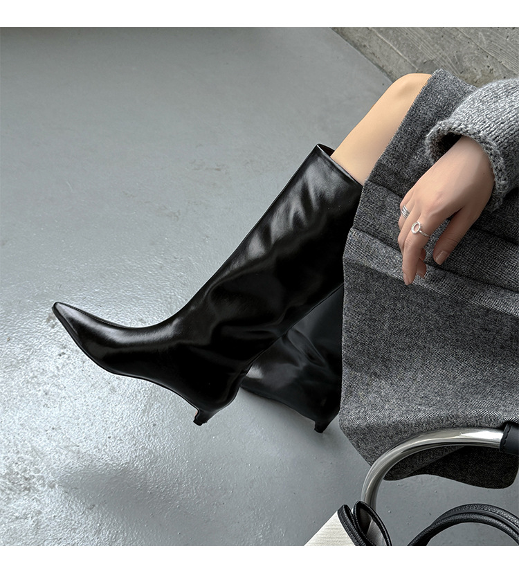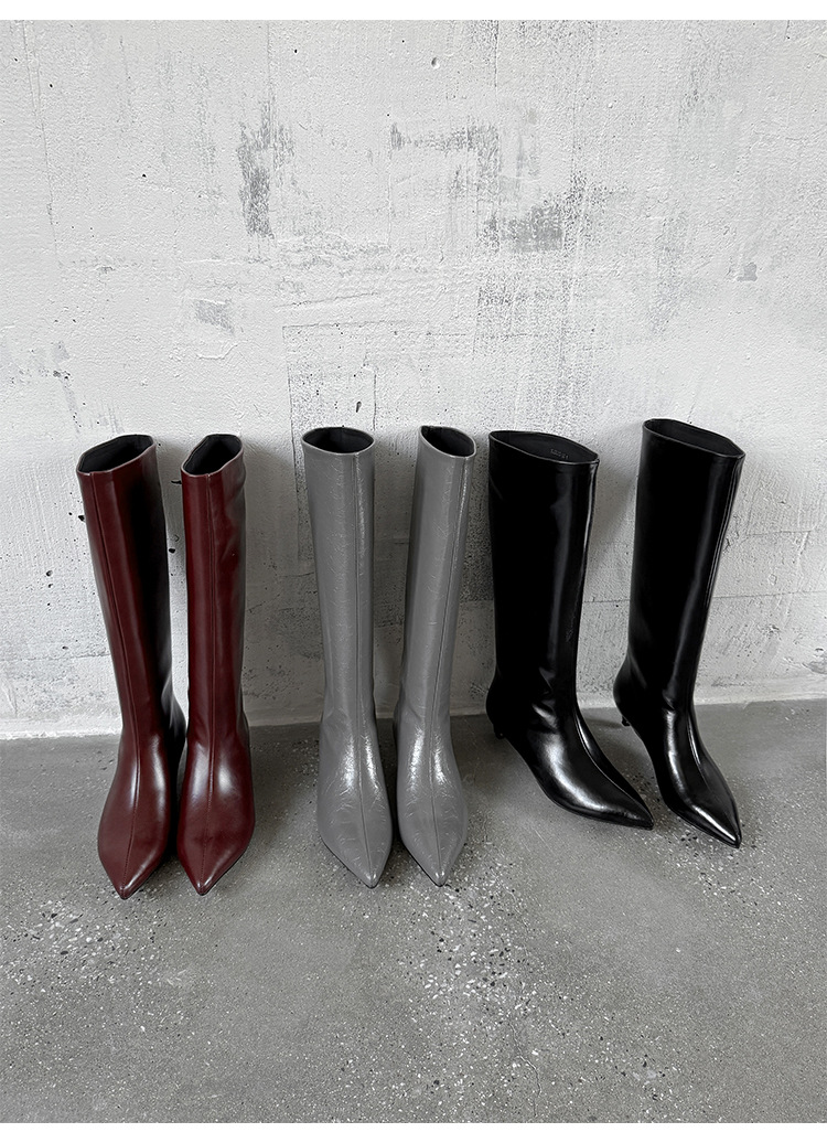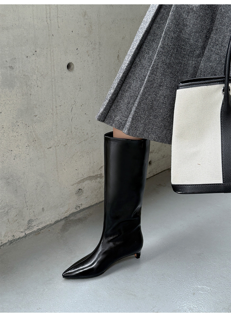CHIKO Charlene Pointy Toe Kitten Heels Knee High Boots feature leather upper, leather lining, rubber sole. Heel height is approx. 1″ (3 cm)