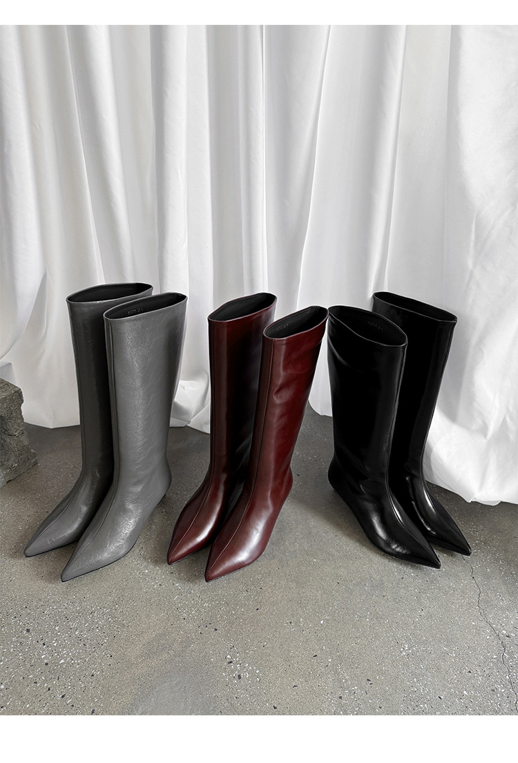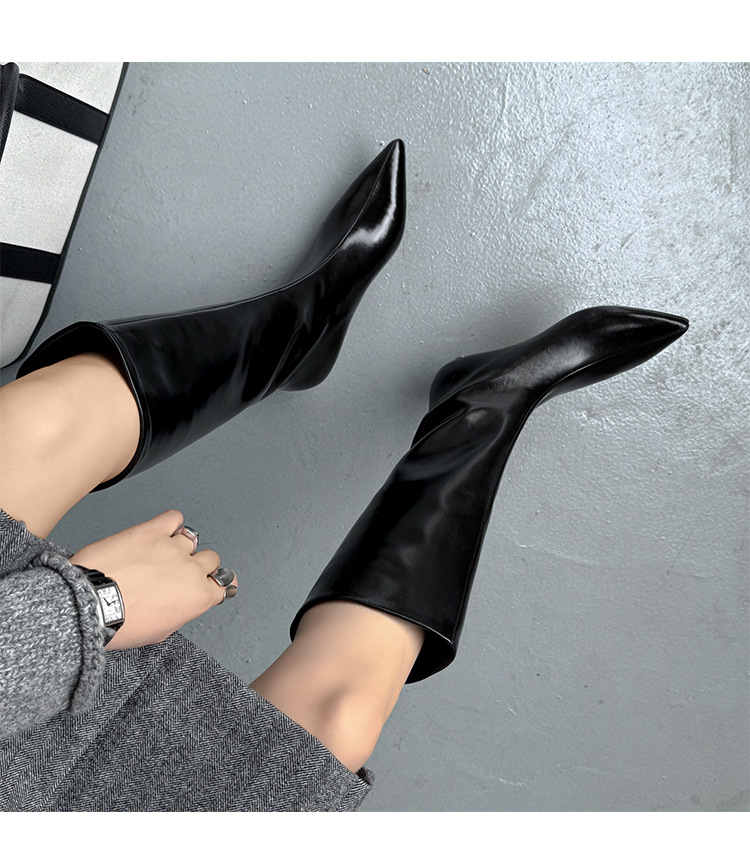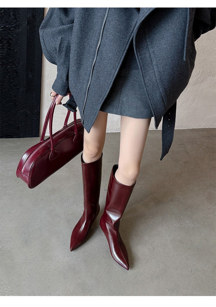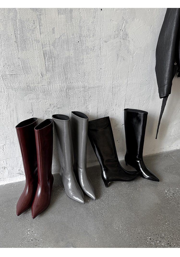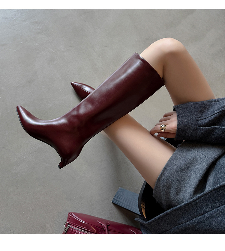 CHIKO Charlene Pointy Toe Kitten Heels Knee High Boots feature leather upper, leather lining, rubber sole. Heel height is approx. 1″ (3 cm)