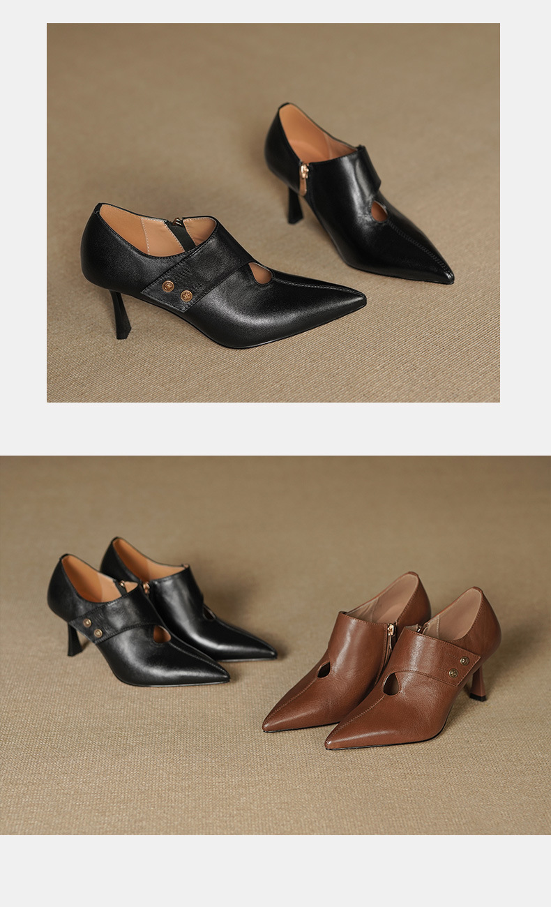 CHIKO Chelsa Pointy Toe Stiletto Ankle Boots feature leather upper, leather lining, rubber sole. Heel height is approx. 2.75″ (7 cm)