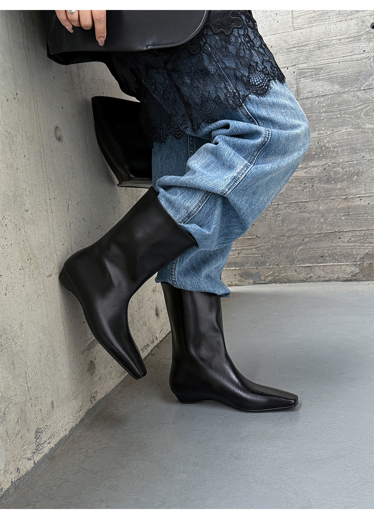 CHIKO Chemed Square Toe Wedge Ankle Boots feature leather upper, synthetic lining, rubber sole. Heel height is approx. 0.8″ (2 cm)