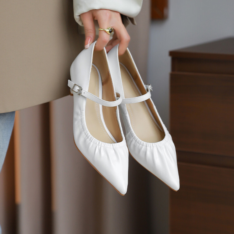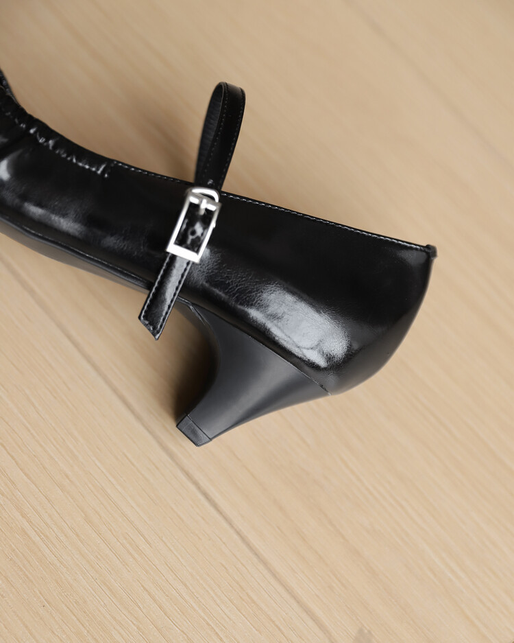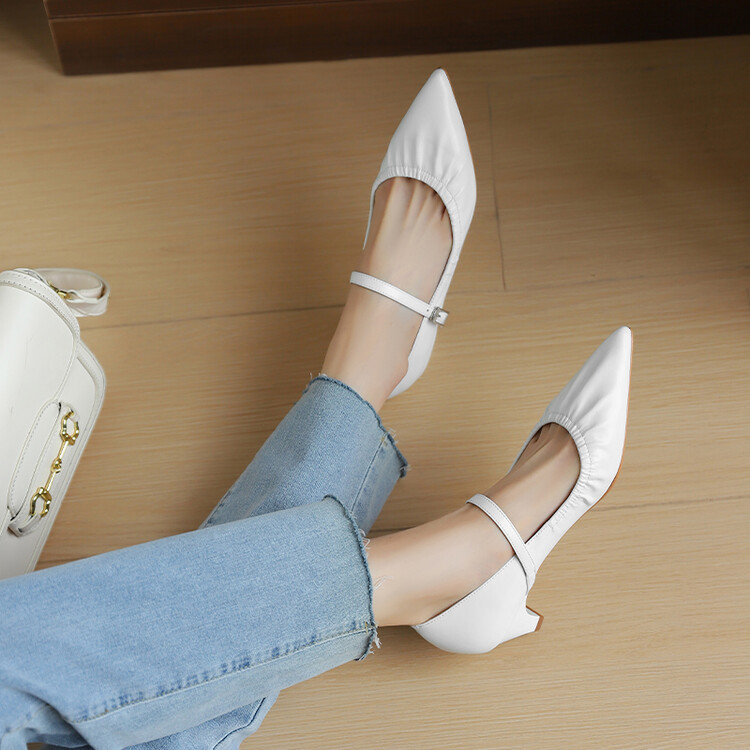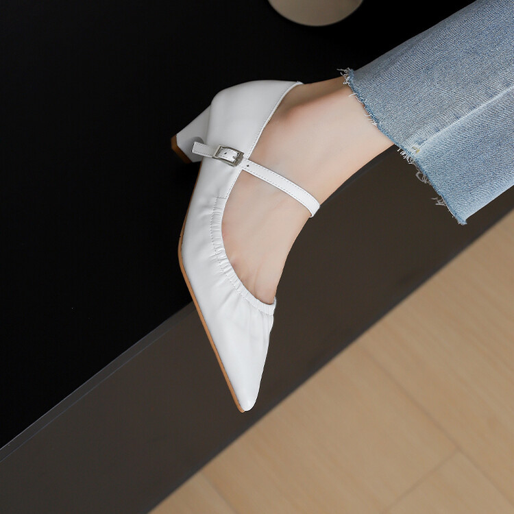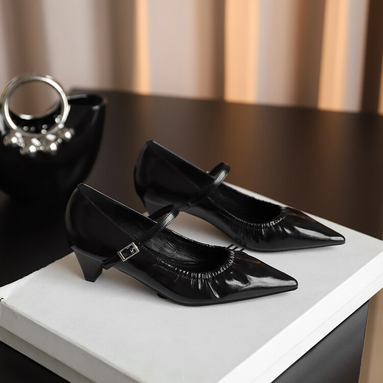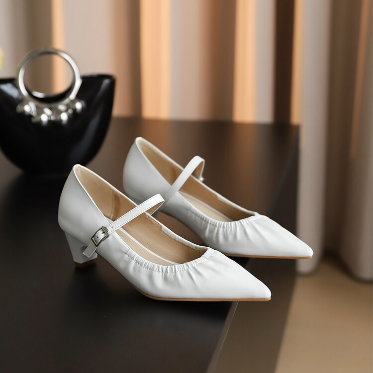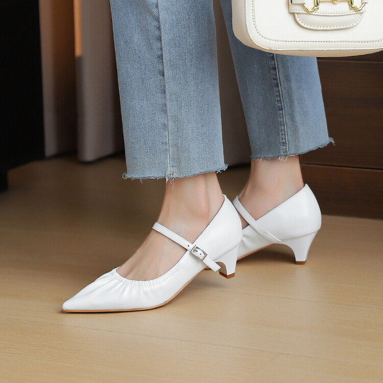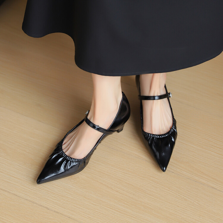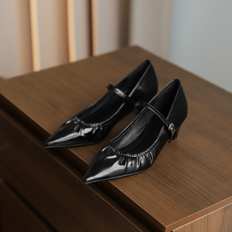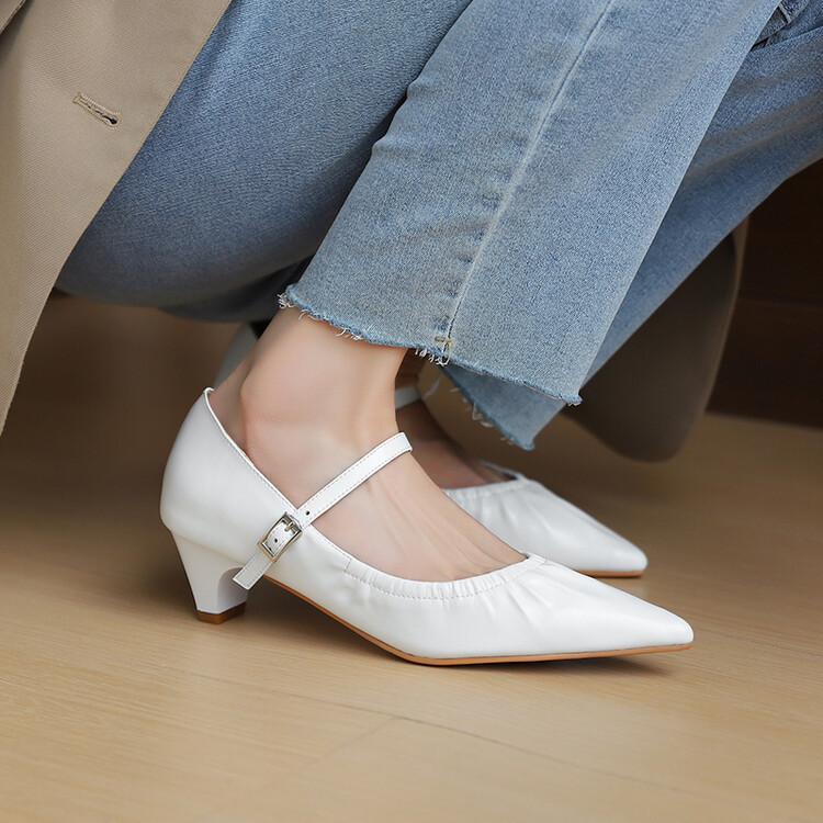 CHIKO Holly Pointy Toe Block Heels Mary Jane Shoes feature leather upper, leather lining, rubber sole. Heel height is approx. 2″ (5 cm)